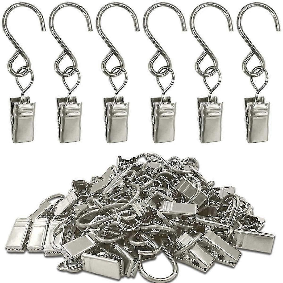 50Pcs Stainless Steel S Hooks Curtain Clips, Hanging Party Lights Clips, Camping Tents, Courtyards