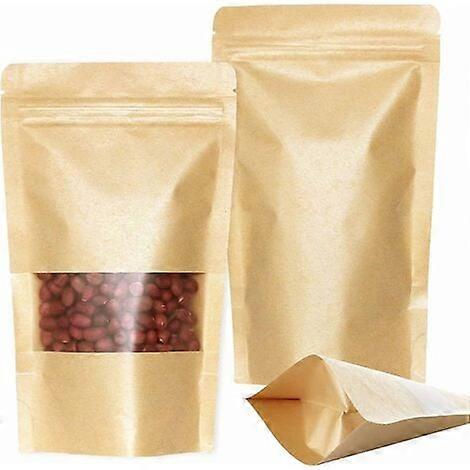 50Pcs 12x20cm Waterproof Zip Lock Bag Kraft Paper Food Grade Small Pouches with Notch and Matte Window HA