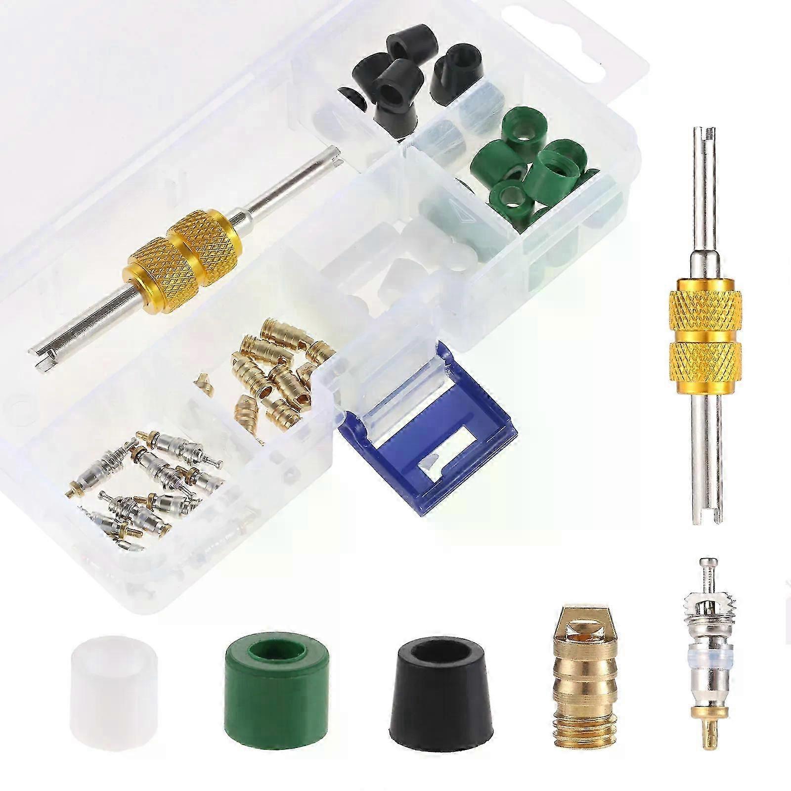 51PCS A/C Air Conditioning Valve Core R22 R410 Refrigeration Valve Core/Hose Gasket/Valve/Remover Installer Tool Assortment Kit