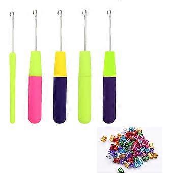 55pc Latch Hook Crochet Needle Micro Braids Dreadlocks Different Size Extension Plastic Aluminum Hair Ring Spool Knitting Sweater Rug Making