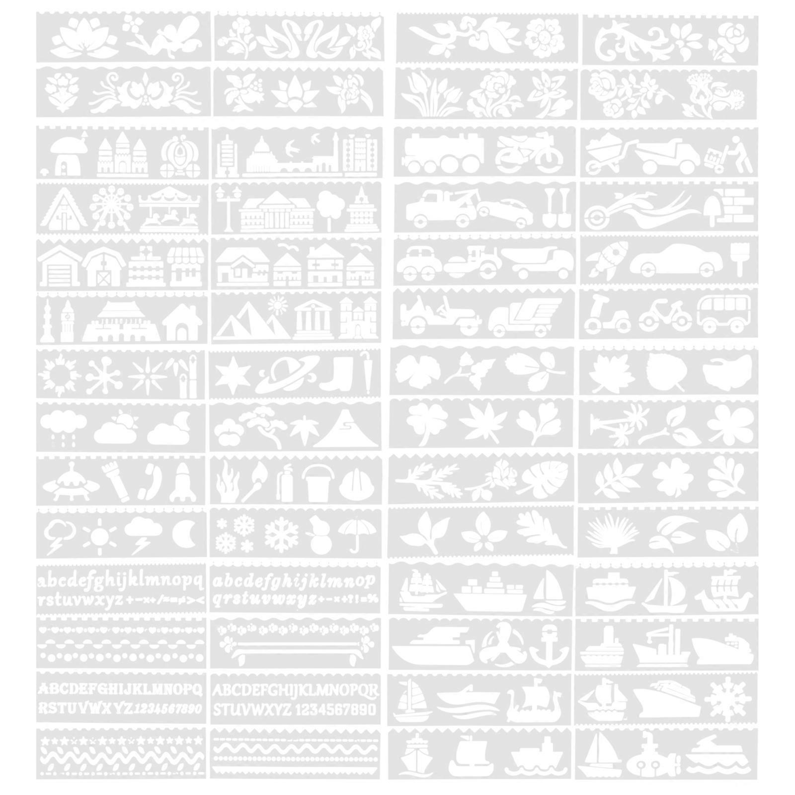 56 Pcs Journal Stencil Reusable Drawing Templates Stencils Alphabet Small Car Painting Stencil Mountain Art Stencil