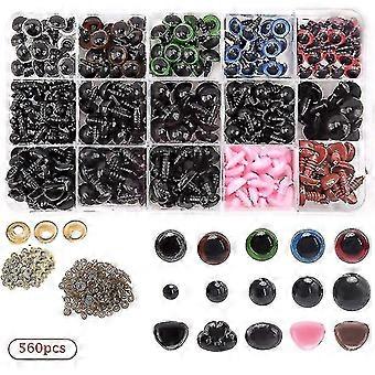 560pcs μάτια και μύτες ασφαλείας με ροδέλες συμβατές με γεμιστά μαύρα μάτια λάμψης κούκλας