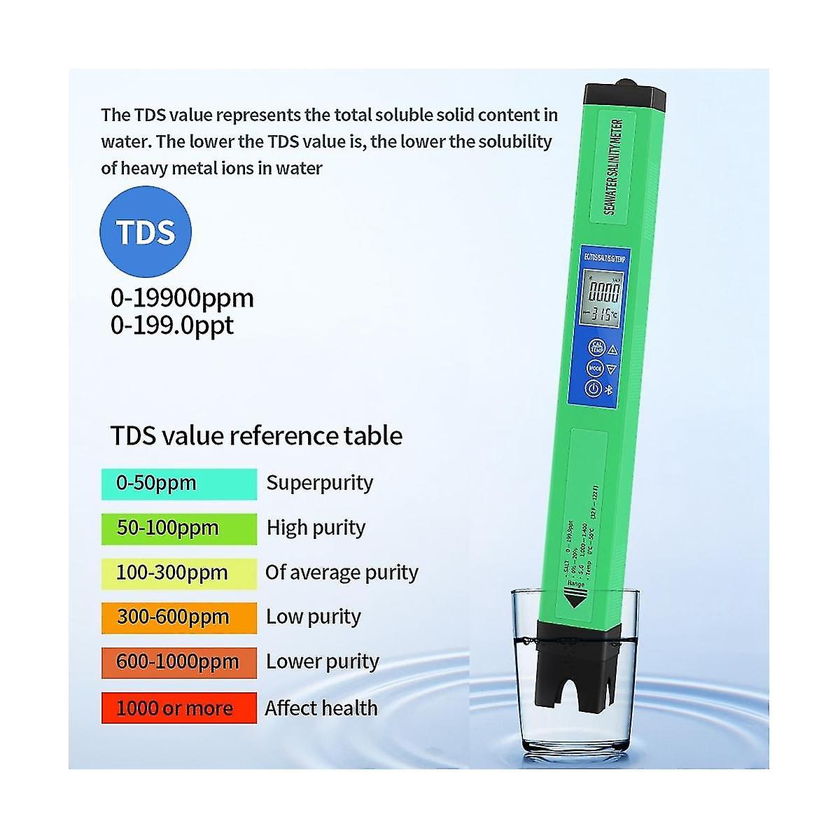 5In1 Water Quality Tester Digital Salinity Meter EC TDS SG TEMP SALT Monitor for Driking Water Pool