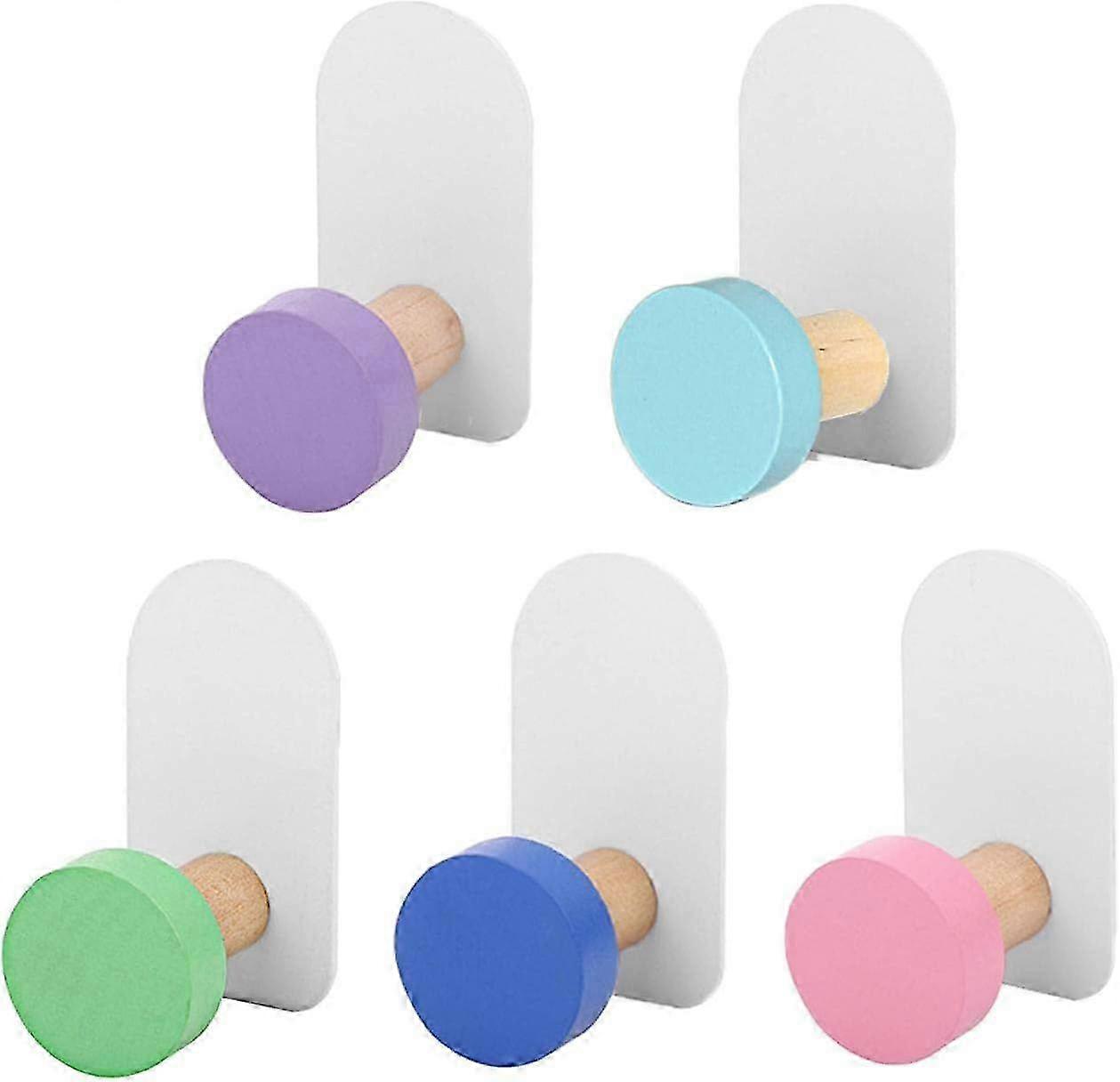 5Pcs Animal-Shaped Macaron Coat Hooks, Self-Adhesive Wooden Wall Hooks
