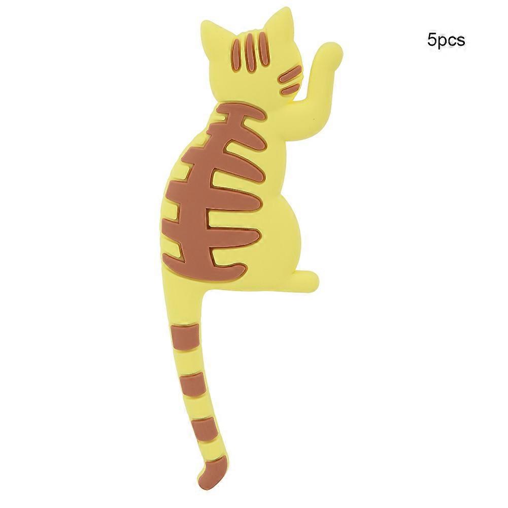 5Pcs Cartoon Cat Fridge Magnets Refrigerator Stickers Decorative Hook(Yellow+Brown Cat)