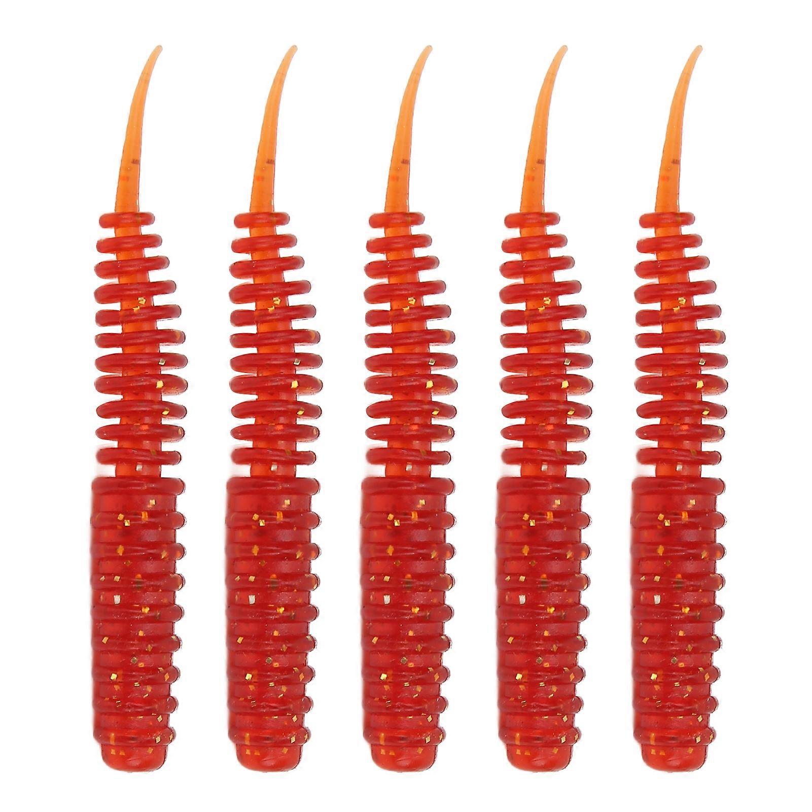 5pcs Threaded Maggot Artificial Bait Tear Resistance Portable Needle Tail Grub Fishing LureFlashing Red