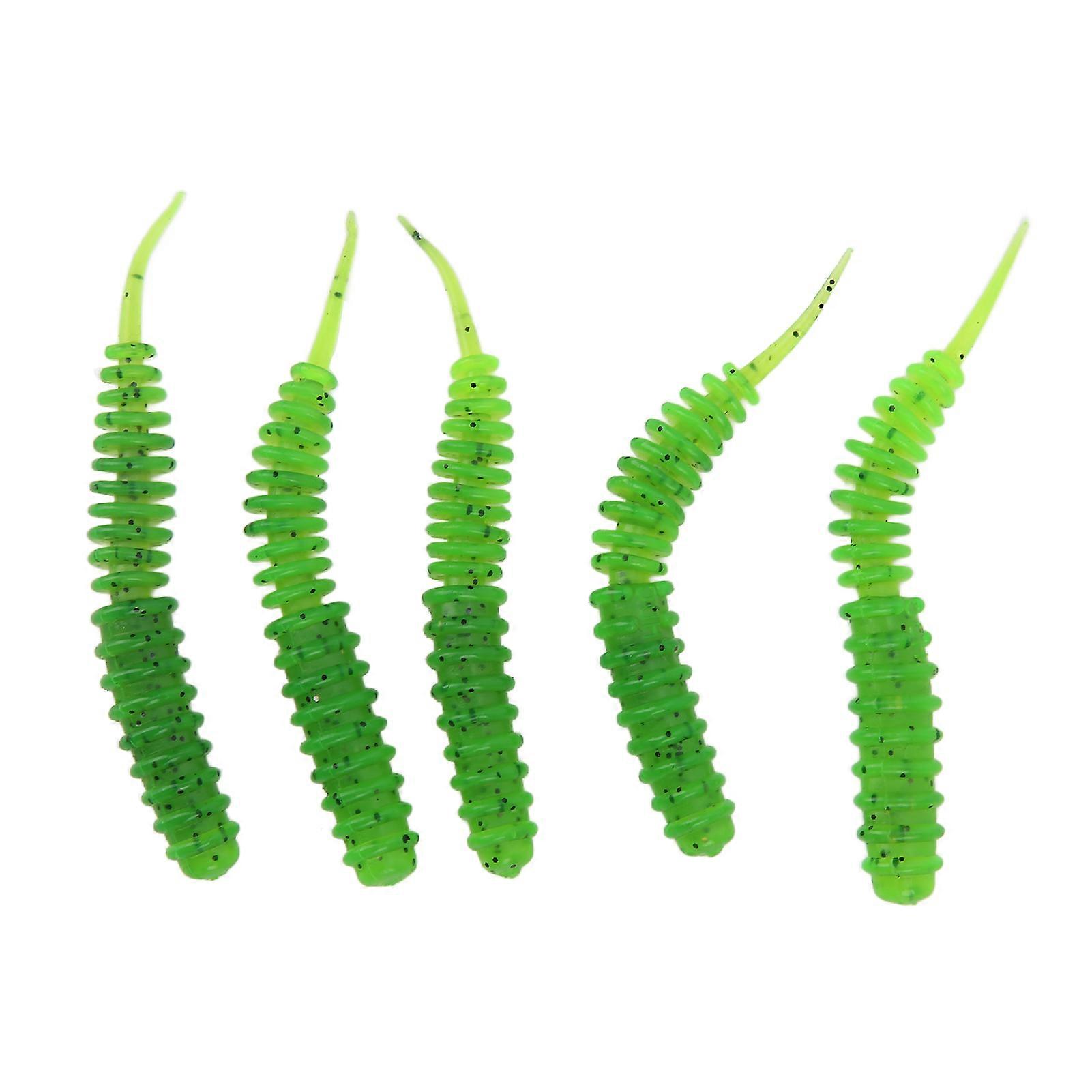 5pcs Threaded Maggot Artificial Bait Tear Resistance Portable Needle Tail Grub Fishing LureGreen
