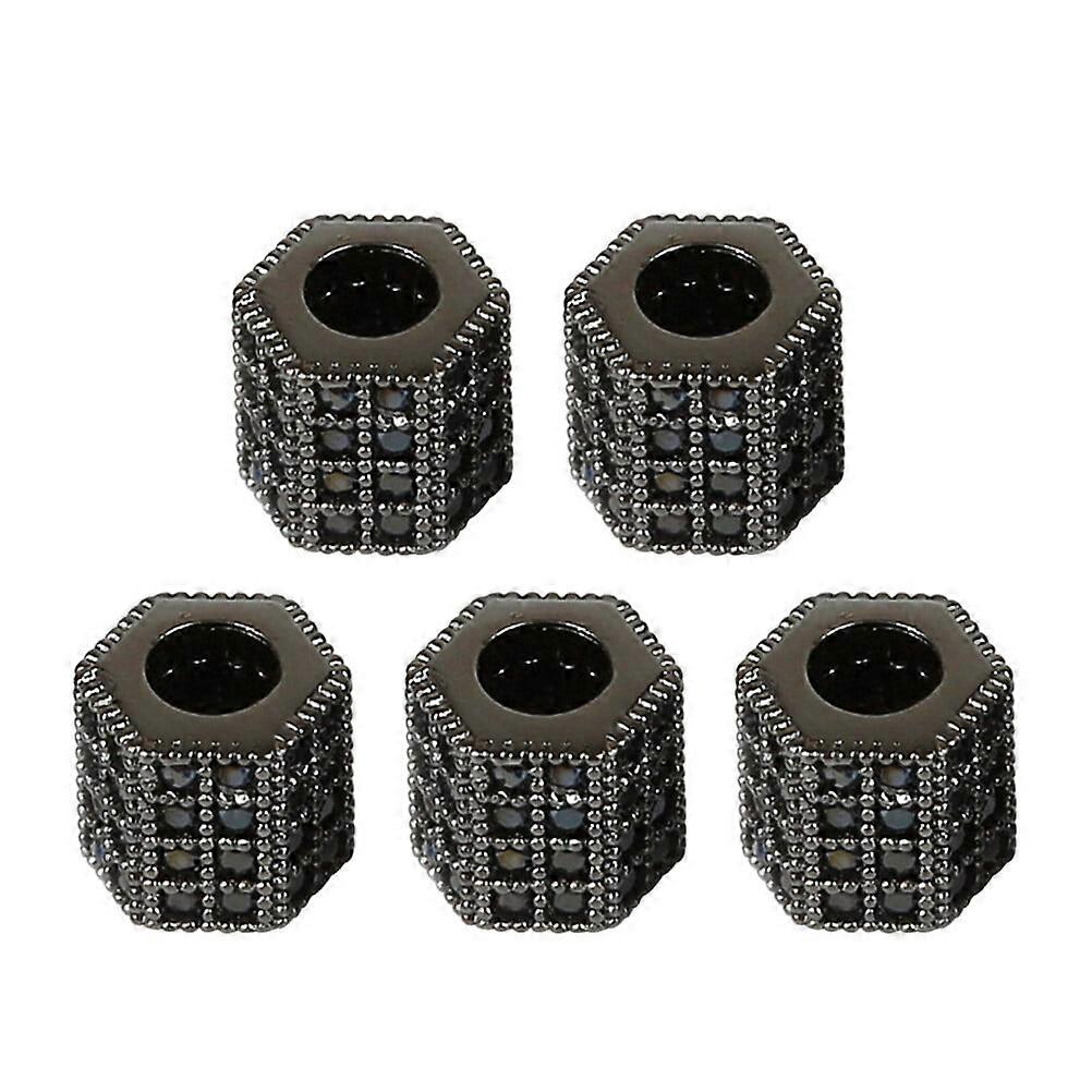 5PCS Jewelry Separate Beads Zircon Embed Cylinder Beads DIY Bracelet Necklace Supplies for Girls Women Black