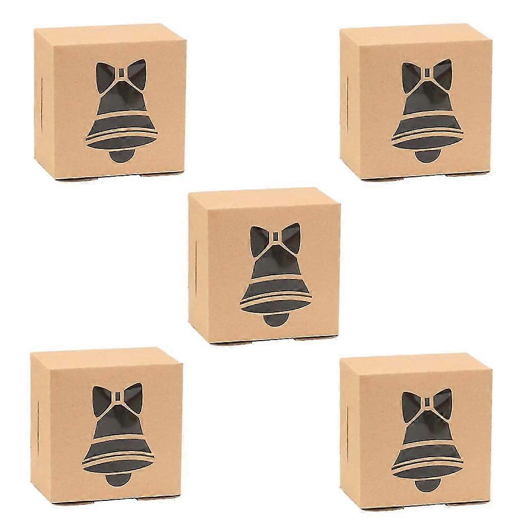 5pcs 4 Inch Kraft Paper Candy Boxes With Clear Window Christmas Snowflake Tree Elk Pattern Bakery Pastry C @BUGU