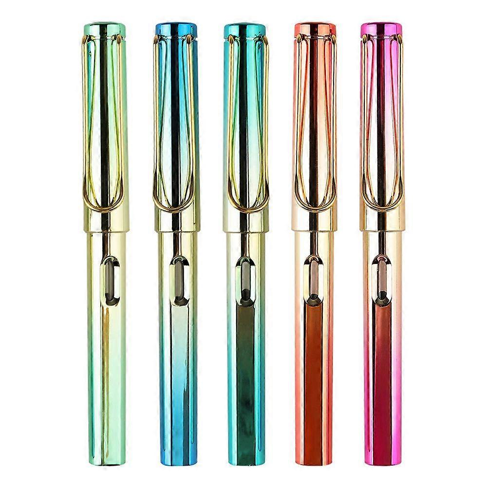 5Pcs Students Practice Calligraphy Pen Portable Colored Fountain Pens with Ink Sacs
