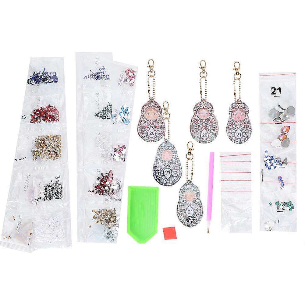 5Pcs Keychain Diamond Painting Matryoshka Doll Pattern DIY Resin Key Ring Luggage Pendants
