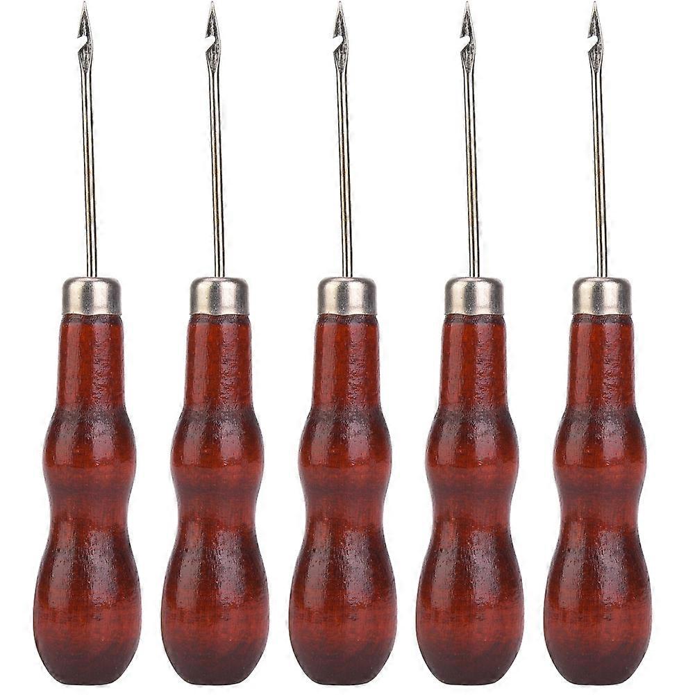 5pcs Wooden Handle Awl Hole Punch Sewing Stitching Awl Tool Shoe Repair Crochet Hook
