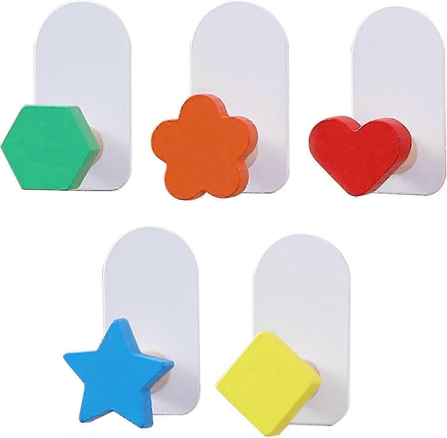 5Pcs Animal-Shaped Kids Coat Hooks, Self-Adhesive Wooden Wall Hooks