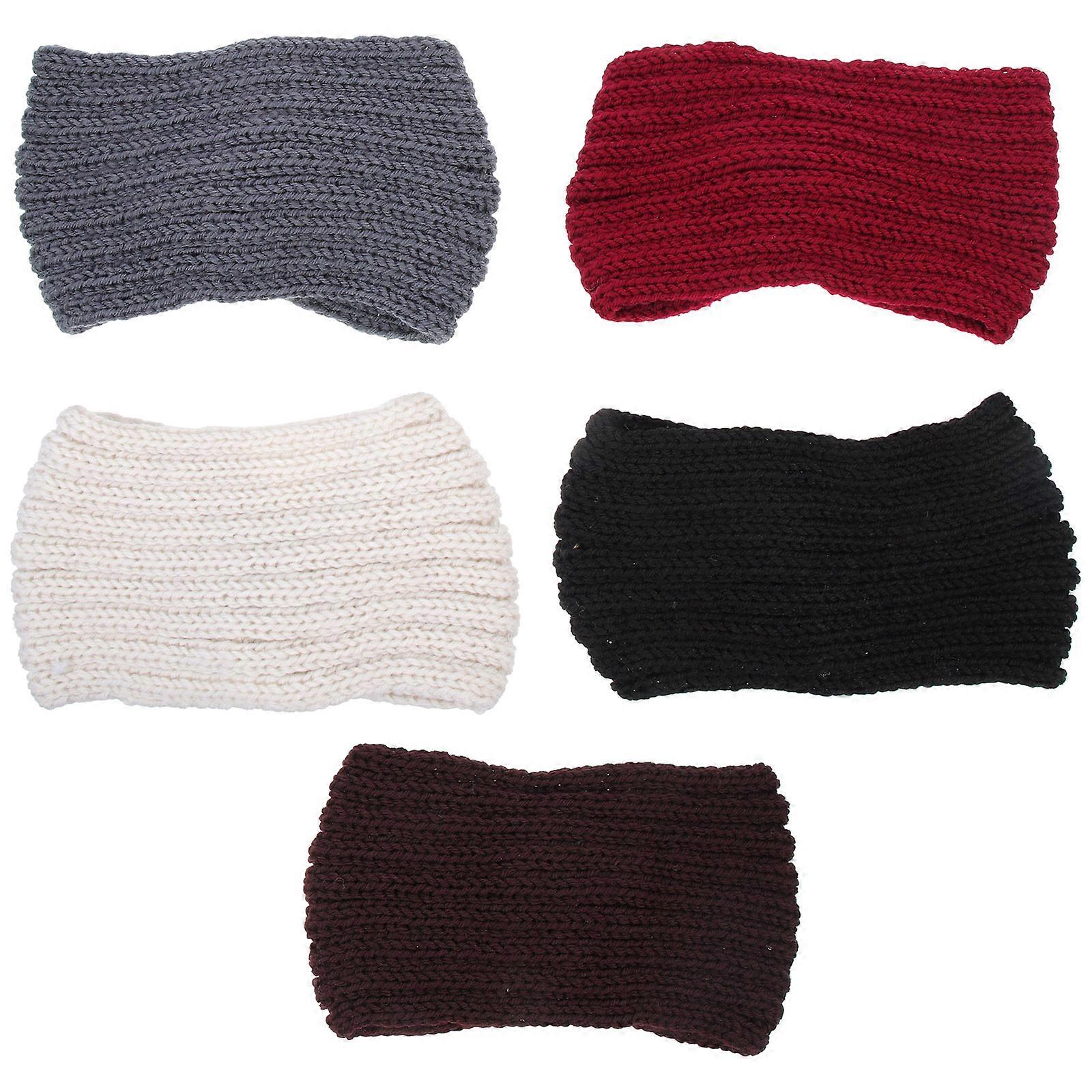 5Pcs Assorted Color Stretchy Hair Bands Chic Knitted Design For Women In Yoga Running Parties