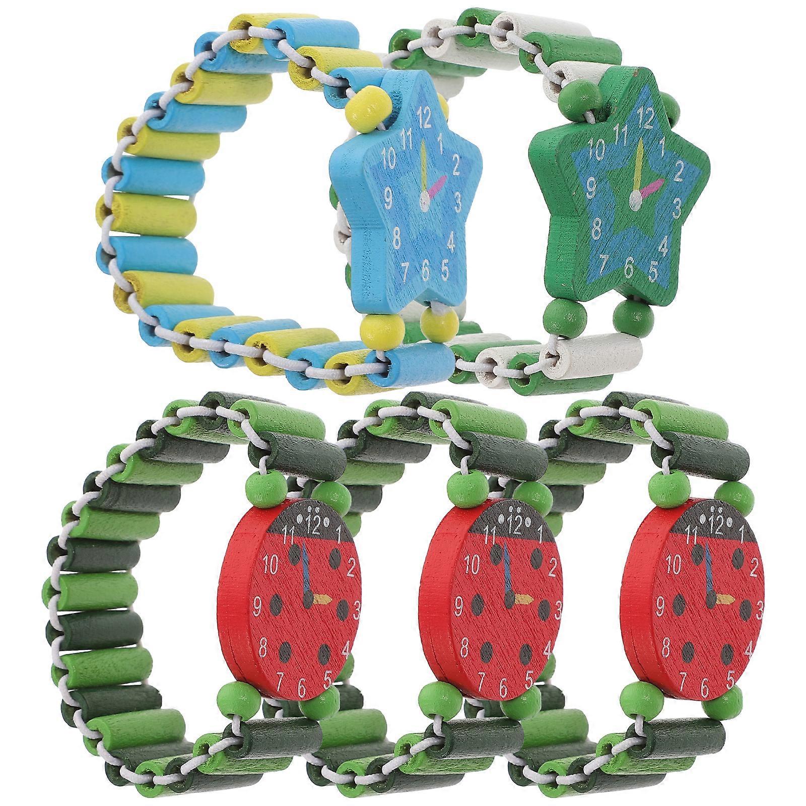 5Pcs Cartoon Watches Children Wooden Watches Simulated Watches (Random Color)