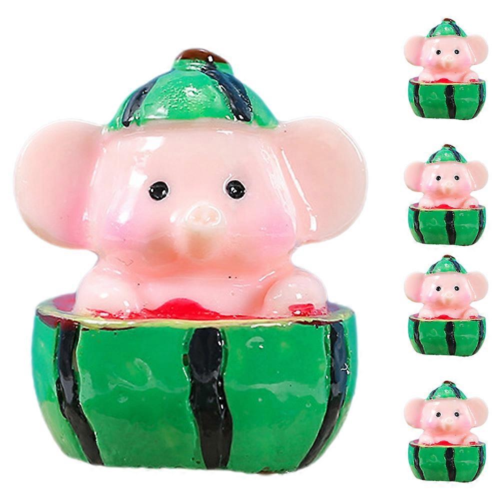 5pcs Elephant Ornament Landscape Watermelon Elephant Statue Bonsai Decor Craft Planter Decoration