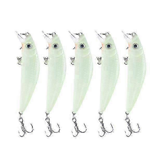 5pcs Luminous Night Baits 3D Night Fishing Lures Hard Baits Artificial Baits Hook Spinners with Fish Hook (Light Green)