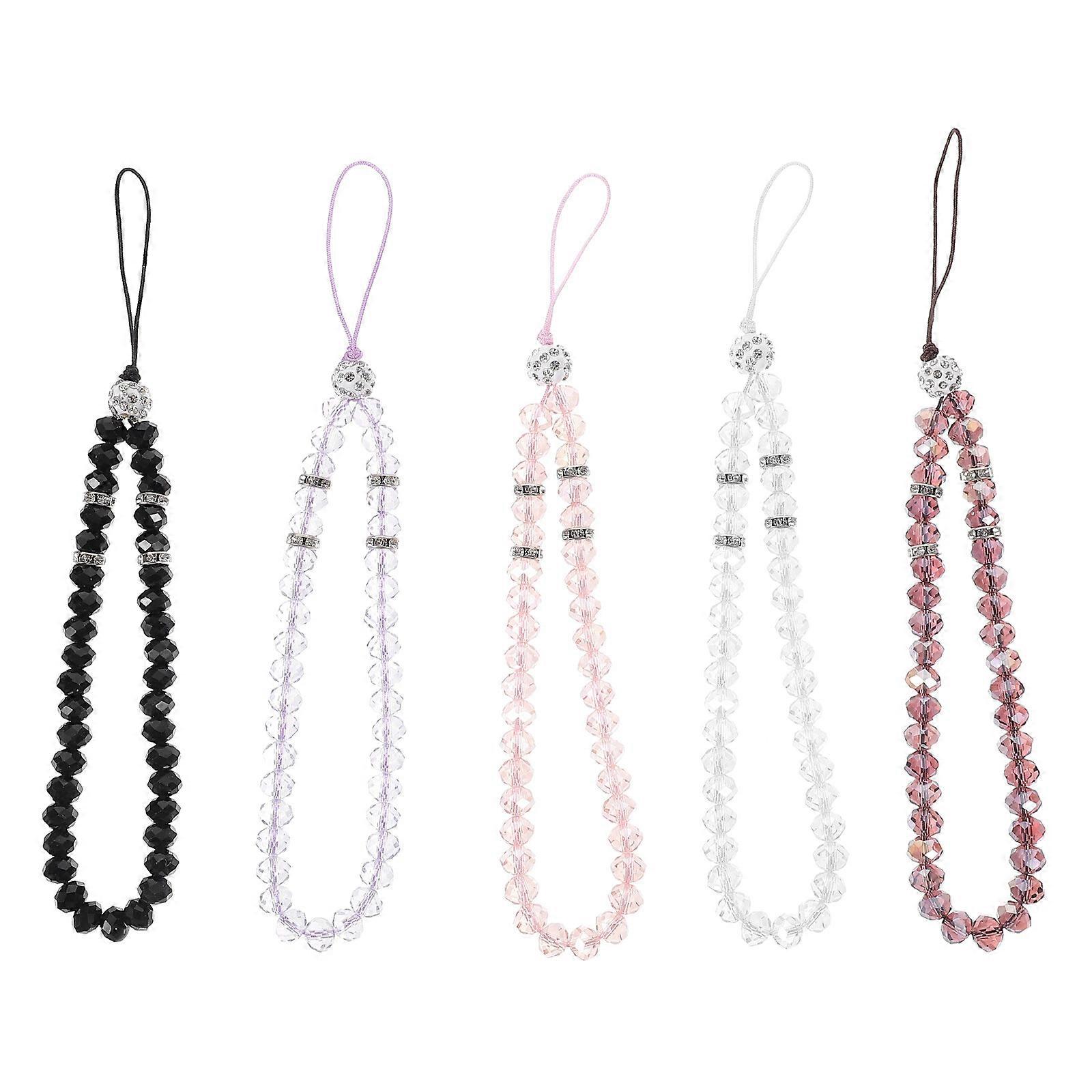 5pcs Beaded Phone Charm Chain Kawaii Phone Lanyard Strap Charm Crystal Phone Chain Decoration