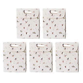 5pcs Christmas Paper Gift Boxes With Handle Flip Cover Cartoon Santa Tree Elk Snowflake Patterns Cand @BUGU
