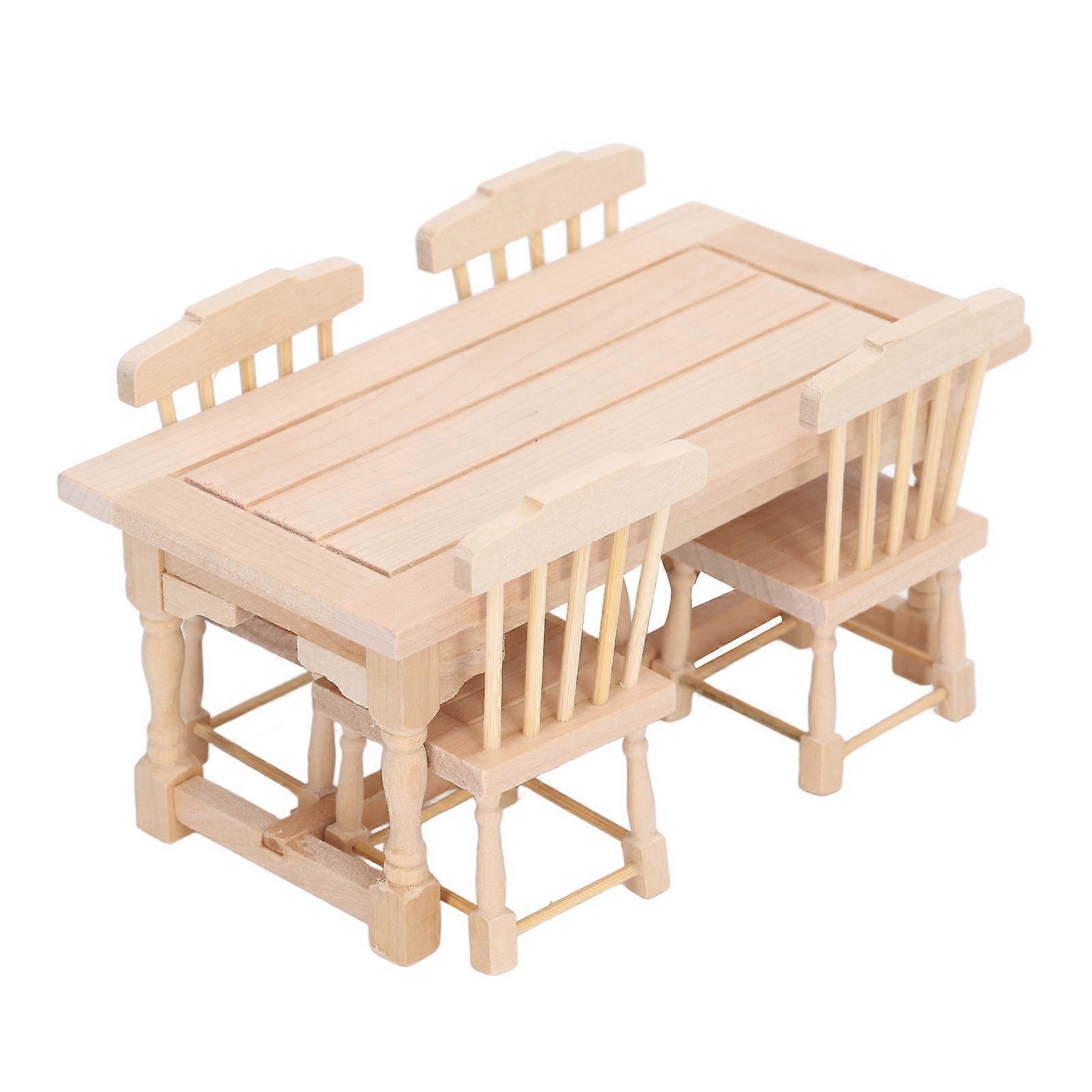 5pcs 1:12 Dollhouse Wooden Mini Furniture Simulation Table and Chairs Set for 3 Years Old +