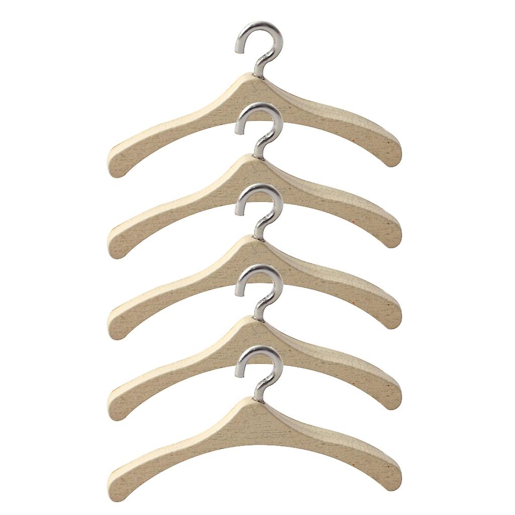 5pcs 1:12 Dollhouse Miniature Wood Clothes Hanger Model Coat Hanger Pretend Play Furniture Decoration DIY Accessories