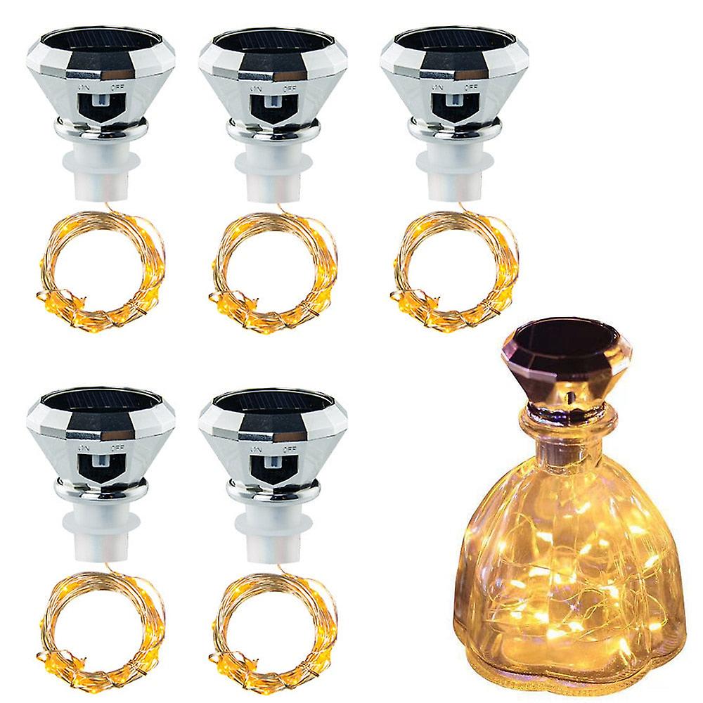 5Pcs 20 Led Outdoor Solar Diamond Bottle Lights String - Festival Garland Copper Wire Fairy Lamps For Wedding & Christmas Decor