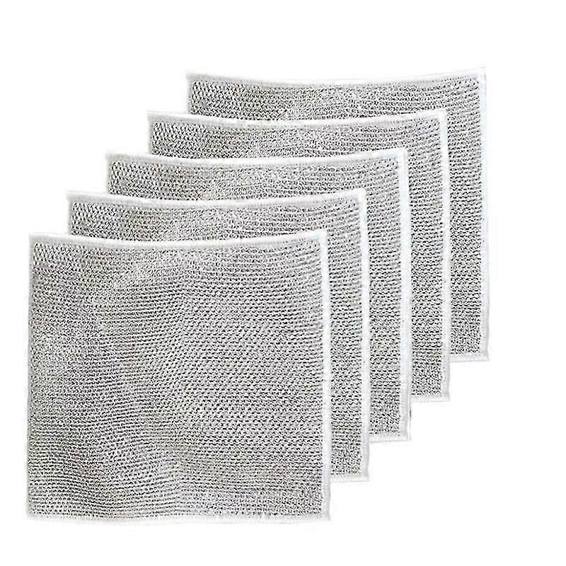 5Pcs 20cm Steel Wire Cleaning Cloth Double -layer Non -stick Oil Iron Dishrag Kitchen Pan Pot Dishes Cloths Rag Napery Dishcloth Rags