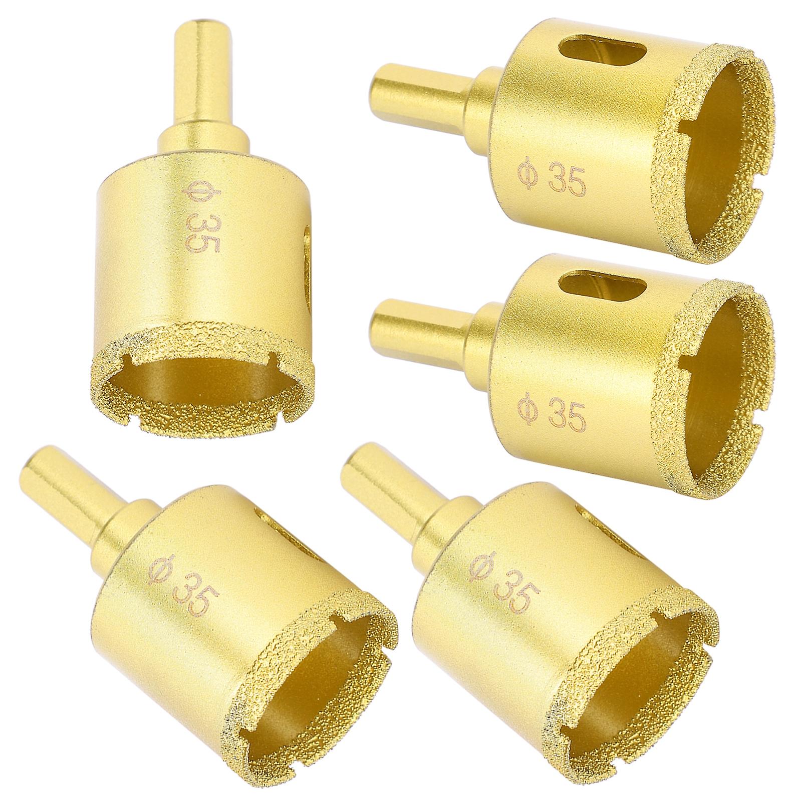 5Pcs 35mm Diamond Brazing Drill Bits Hole Saw, Golden Set