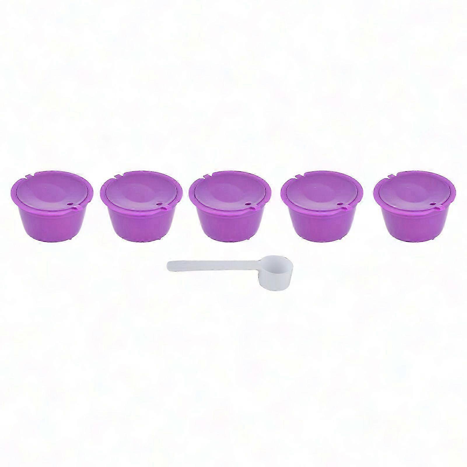 5Pcs 50ml Reusable Coffee Capsule Filter Cup with Spoon for Dolce Gusto Machine - Purple