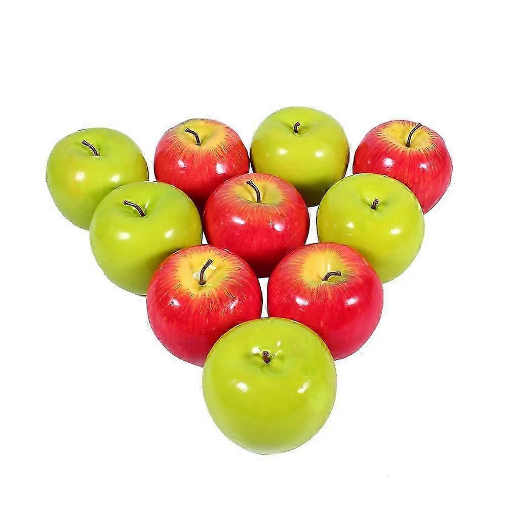 5Pcs Red + 5Pcs Green Artificial Fake Apples Fruit Lifelike Kitchen Display Home Food Decor