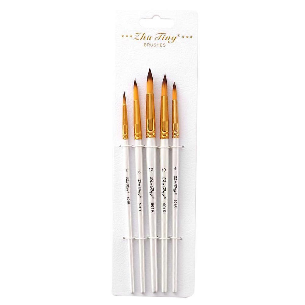 5pcs Art Brush Set Professional Paint Brushes Watercolor Acrylic Oil Painting White Round Tip