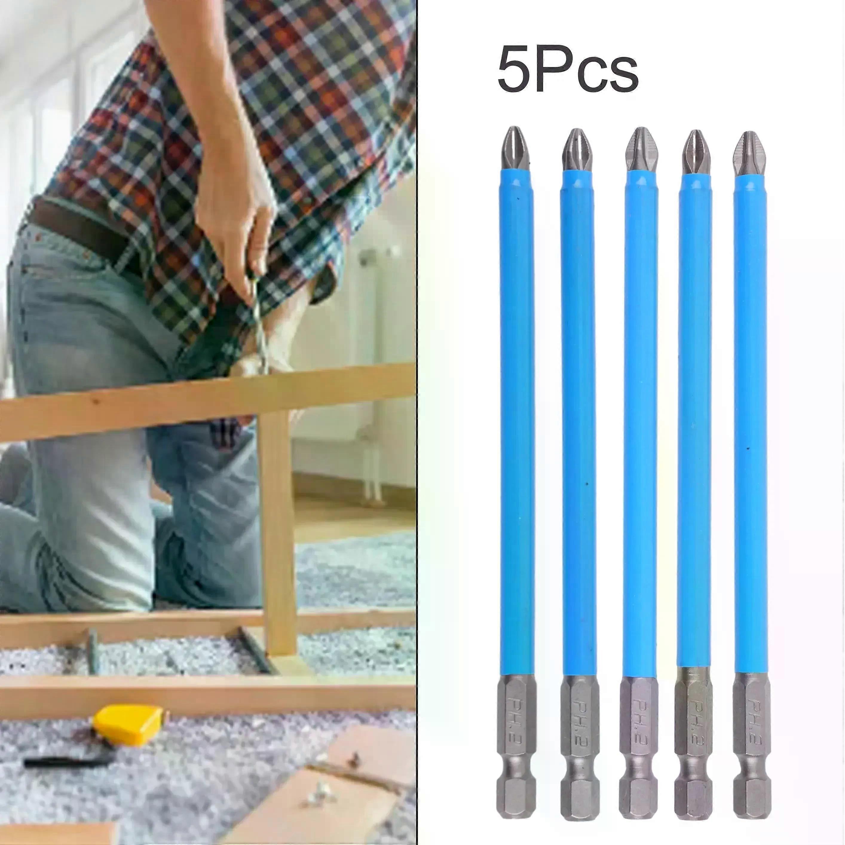 5Pcs PH2 Magnetic Batch Head Extra Long 127mm Magnetic Non-Slip Screwdriver Bit Set 1/4 Hex Shank Cross Screw Driver Hand Tools