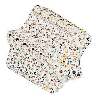 5pcs Washable Breathable Menstrual Pad Flower Pattern Super Absorbent Reusable Cotton Sanitary Pad Panty Liners L