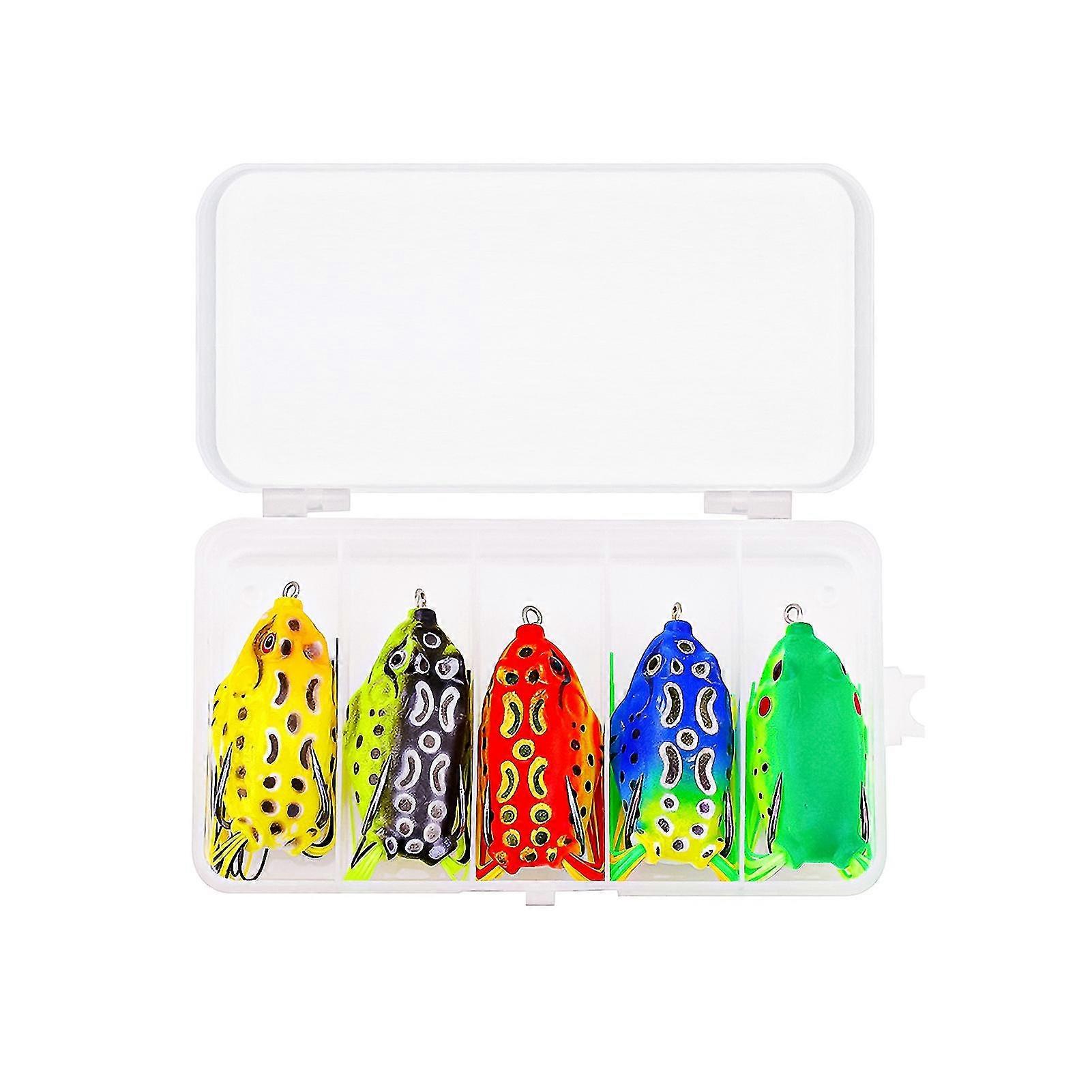 5pcs/set Frog Lure Strip Line Double Hook Colorful Soft Simulated Topwater Fishing Crankbait For OutdoorLarge
