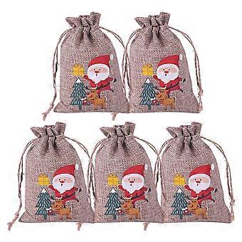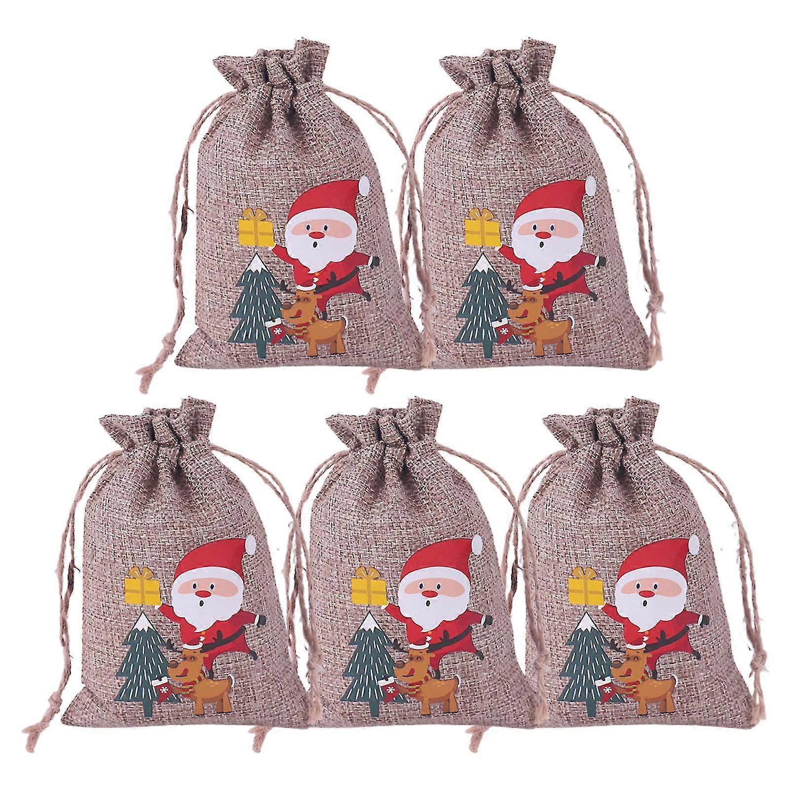 5Pcs/Set Goodies Bag Drawstring Dust Proof Imitation Linen Tiny Jute Burlap Christmas Themed Printed Candy Pouch