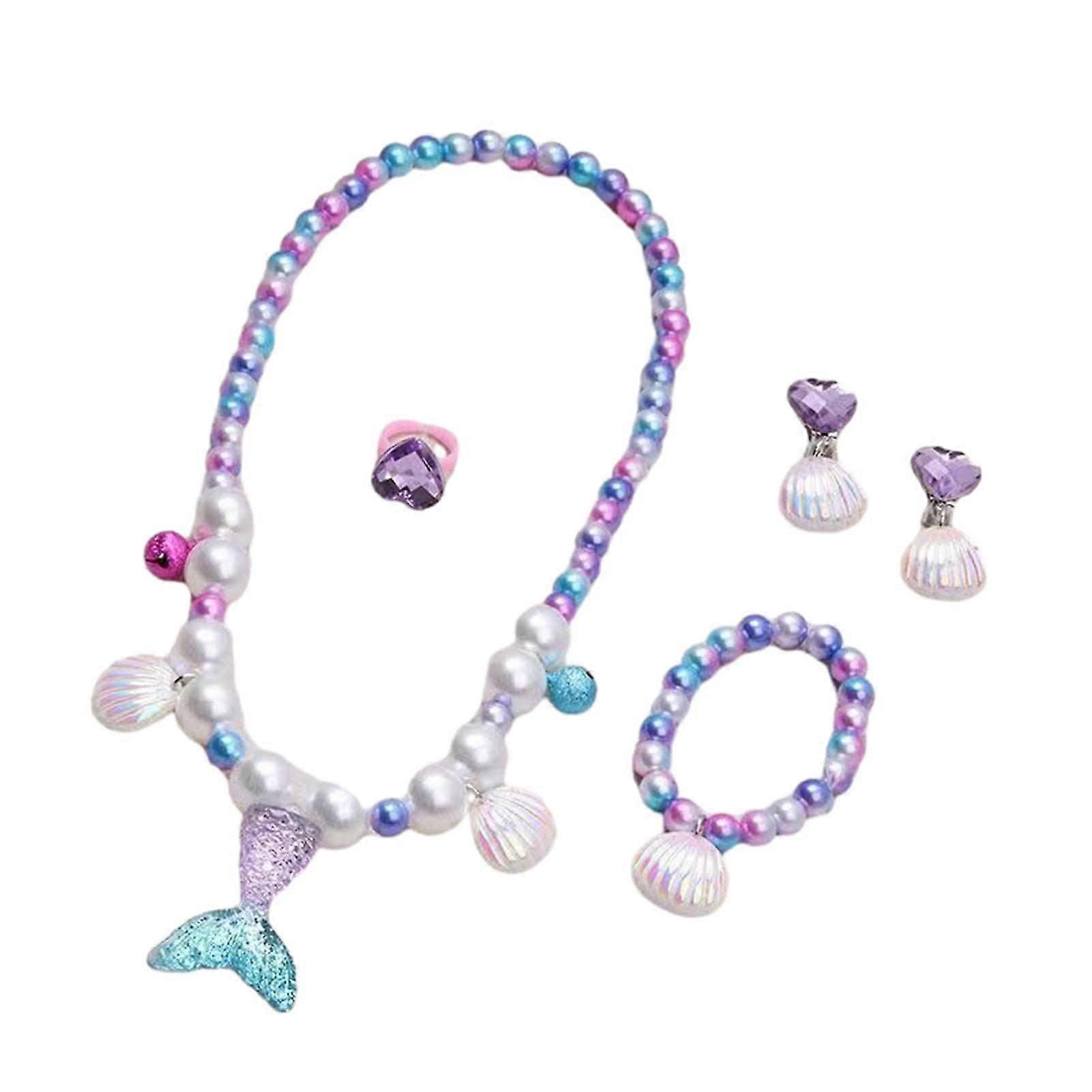 5pcs/set Necklace Bracelet Ring Earring Set Mermaid Tail Shell Exquisite Jewelry Accessories Shell Jewelry Set For Girls