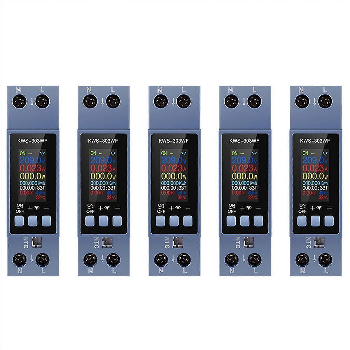 5X TUYA WIFI Energy Meter Din Rail Mount Digital Voltmeter Ammeter Wattmeter AC 100-290V KWh Power M