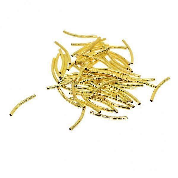 5x50 Piece Engraved Curved Tube Noodle Beads Jewelry Making 25x2mm Gold