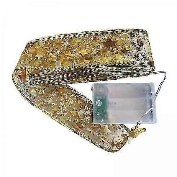 Description:Christmas Ribbon Light: This Copper wire string light comes with a golden ribbon that is perfect for decorating Christmas trees, you can DIY them into any shape you like to decorate the Christmas tree with a romantic atmosphere effect.Durable and Reliable: Made from high quality copper wire plastic, this fairy string light is designed to last, providing you with a long term festive decoration. Powered by 3X AA batteries (not included), making it convenient and portable for any decoration needs.Elegant Design: The Christmas string light features a beautiful printed pattern, adding a touch of elegance to your Christmas decorations.Christmas DecorationsLED Ribbon Christmas Light is perfect for decorating your Christmas tree, fireplace, restaurant, garden, room, ladder, patio, doorway, wedding, and party, and can also be used to make Christmas wreaths, wrap Christmas gifts, etc.Versatile Use: LED Christmas tree ribbon light, not only for Christmas, but also can also be used for other occasions or events, adding a warm and festive atmosphere to any space.Package Includes:1Christmas Ribbon Light(5 Pack)Note:Please allow slightly errors due to manual measurement and different monitors.