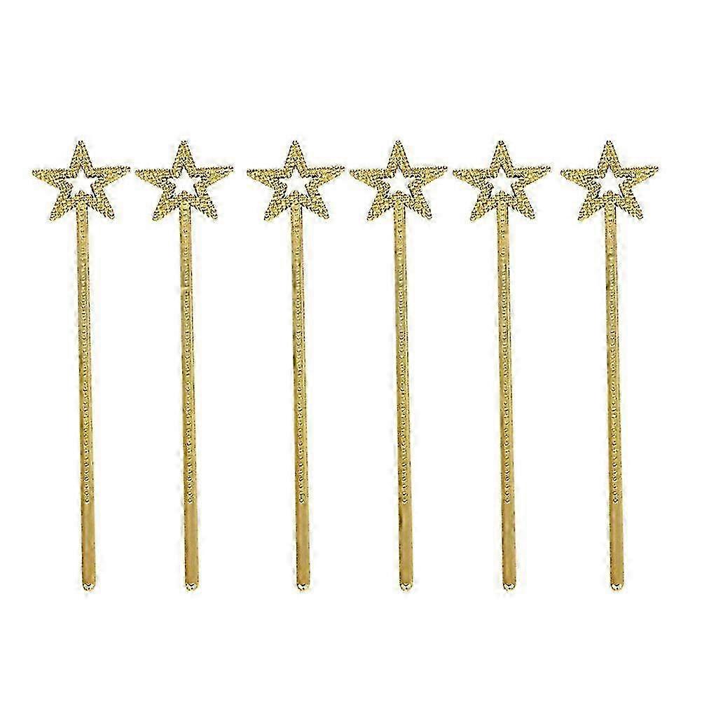 6pcs Golden Plastic Wands with Star Pentagram Design for Girls Party, Cosplay or Fairy Theme, 35cm Angel Fairy Sticks