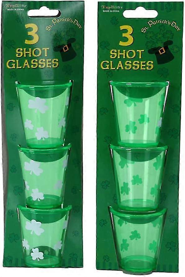 6pcs Amosfun Shamrock Shot Glasses - Saint Patrick's Day Plastic Necklace Accessory - Fest