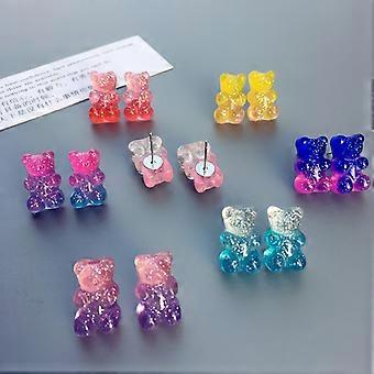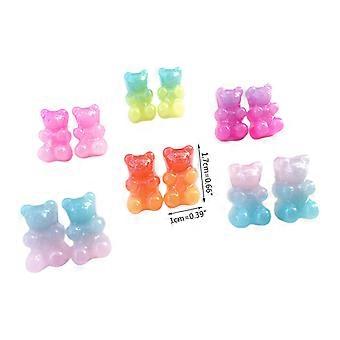 6 ζευγάρι μόδα υπέροχη καραμέλα χρώμα κινούμενα σχέδια γλυκιά αρκούδα ρητίνη gummy σκουλαρίκια αρκούδα λίγο ζώο γοητείες αυτί καρφιά κοσμήματα
