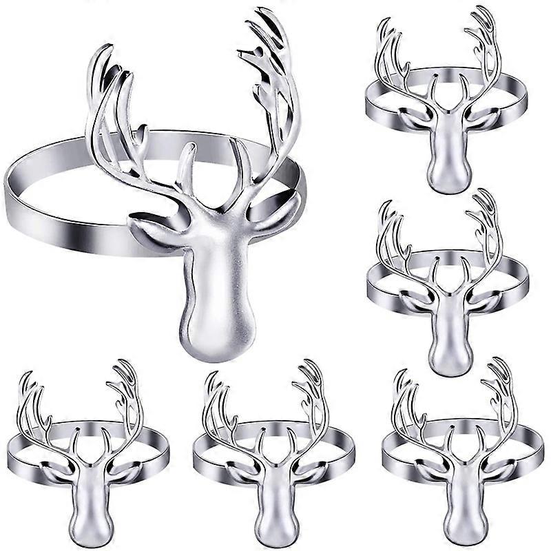 6 Pieces Deer Napkin Rings, Christmas Metal Napkin Ring Holders for Christmas, Wedding, Holiday Parties,(Silver)
