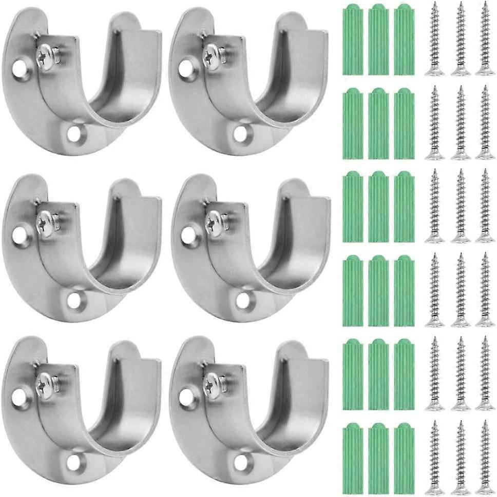 6 Pieces Curtain Rod Holder Curtain Bracket Stainless Steel Closet Rod Holder Closet Rod Support Bar Holder with Screws, for Shower Curtain Cabinet Ro