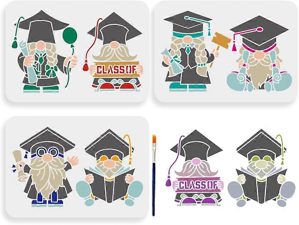 6 Styles Graduation Gnome Stencil 11.78.3inch Large Graduation Cap and Gown Drawing Stencil with Paint Brush Diploma Dwarfs Theme Template for DIY Cra