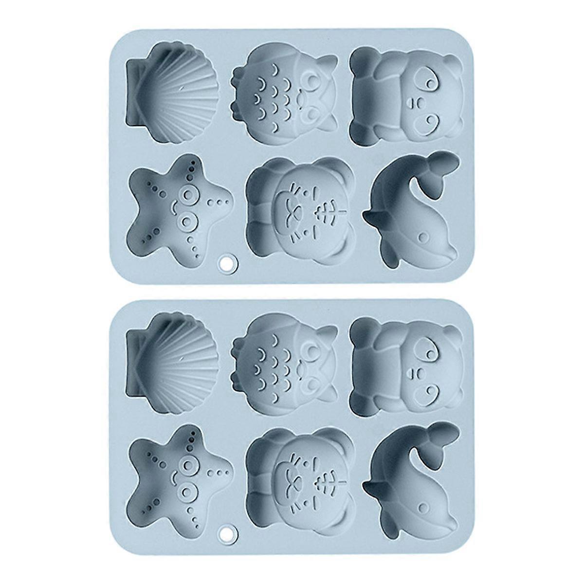 6 cartoon shapes such as owls, dolphins and shells, silicone molds, ice cube chocolate cake molds.
