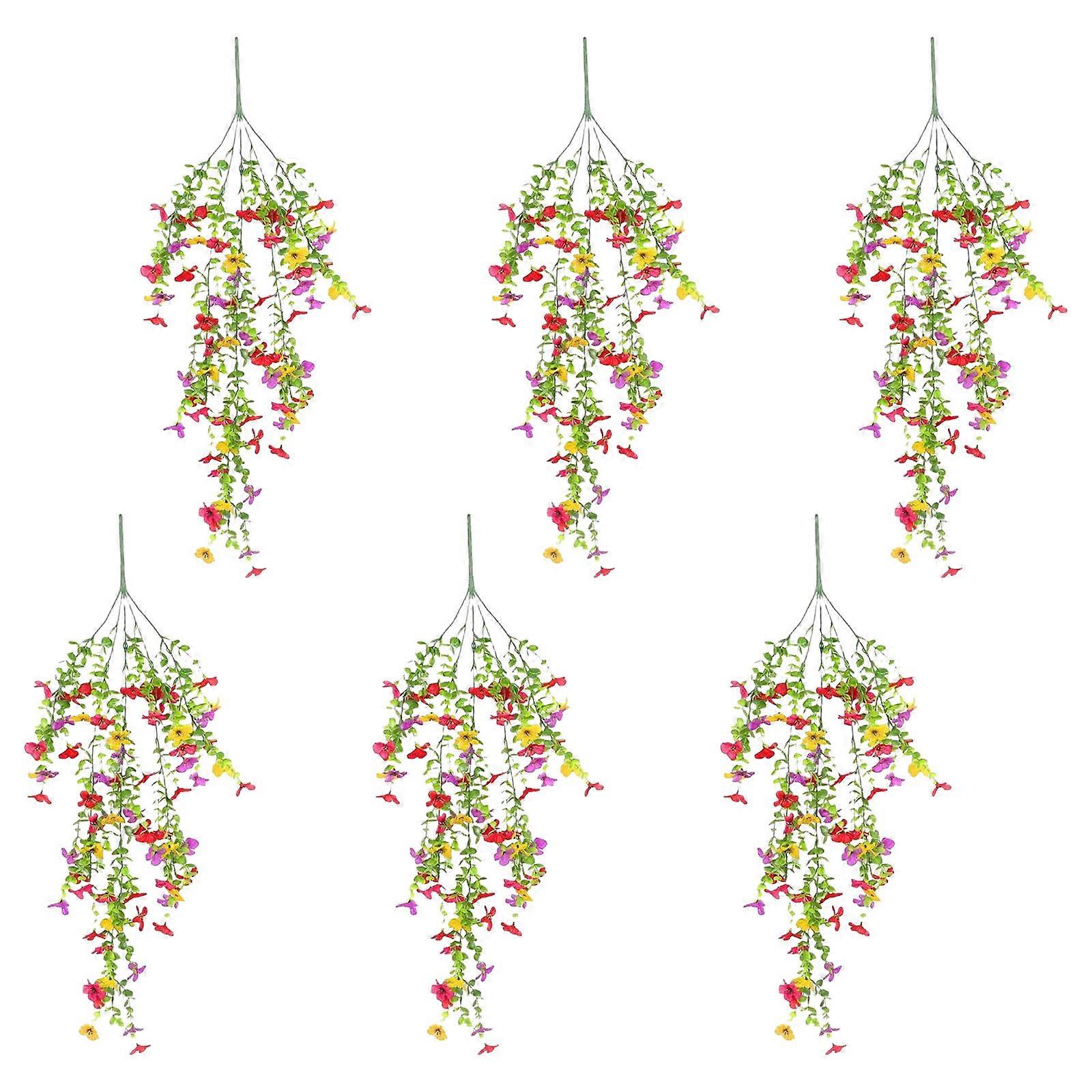6Pcs Artificial Hanging Plant Flower Bouquets Hanging Plant Drooping Plant for Home Wall Garden Yard Patio Wedding Multicolor