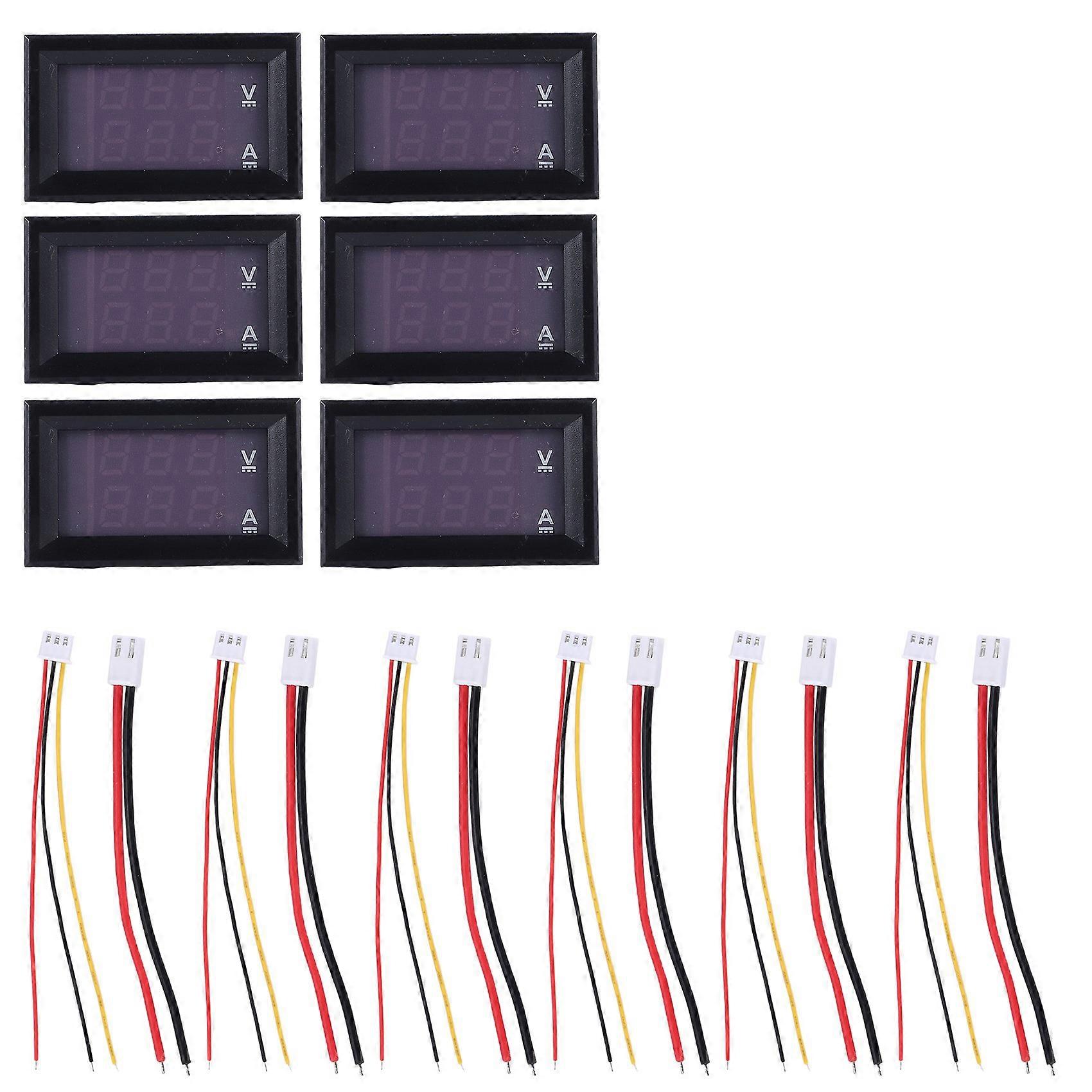 6Pcs Digital Voltmeter Ammeter DC 100V 10A Blue Red LED Current Voltage Meter Tester Dual Display Panel for Automobile