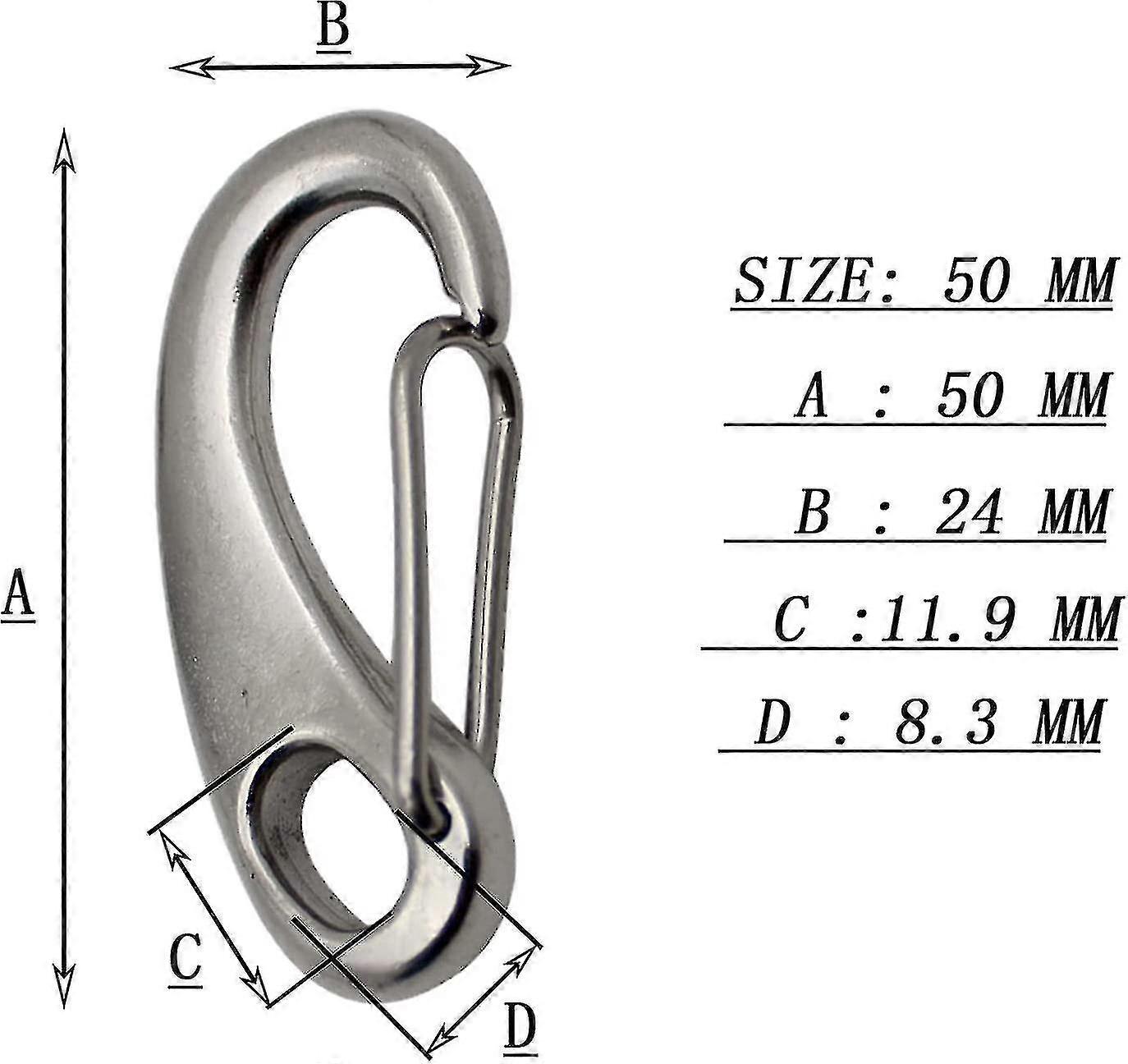 6 Pieces 304 Inox Carabiner, 50mm Inox Carabiner, 304 Stainless Steel Egg Shape Carabiner, For Outdoor Mountaineering Camping Hiking Shibaod