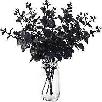 6 Pcs Halloween Black Flowers - Halloween Fake Flower, Faux Eucalyptus Leaves Branches Artificial Flower Arrangement Halloween Farmhouse Home Hallowee